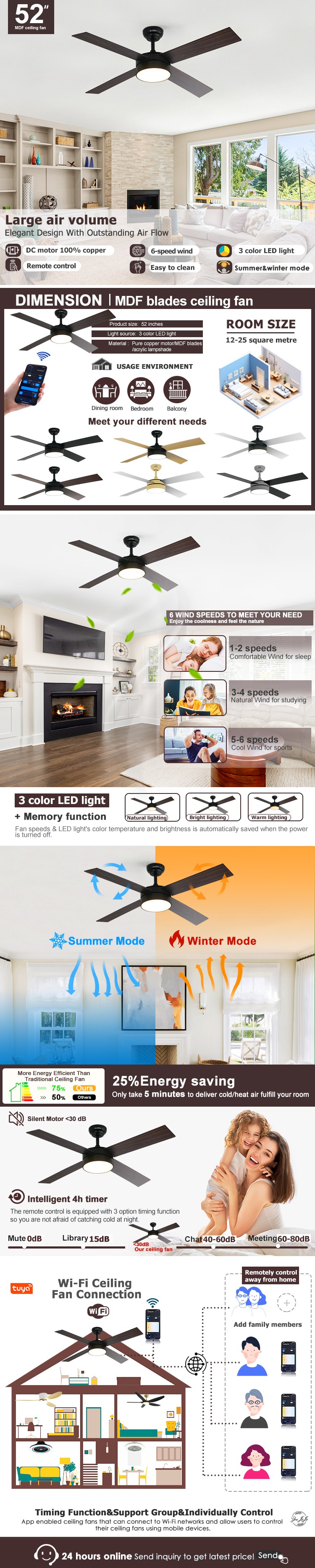 Keywords: ceiling fan, fan with light, 52 inch ceiling fan, DC motor ceiling fan, MDF blade ceiling fan, acrylic lampshade ceiling fan, remote control ceiling fan